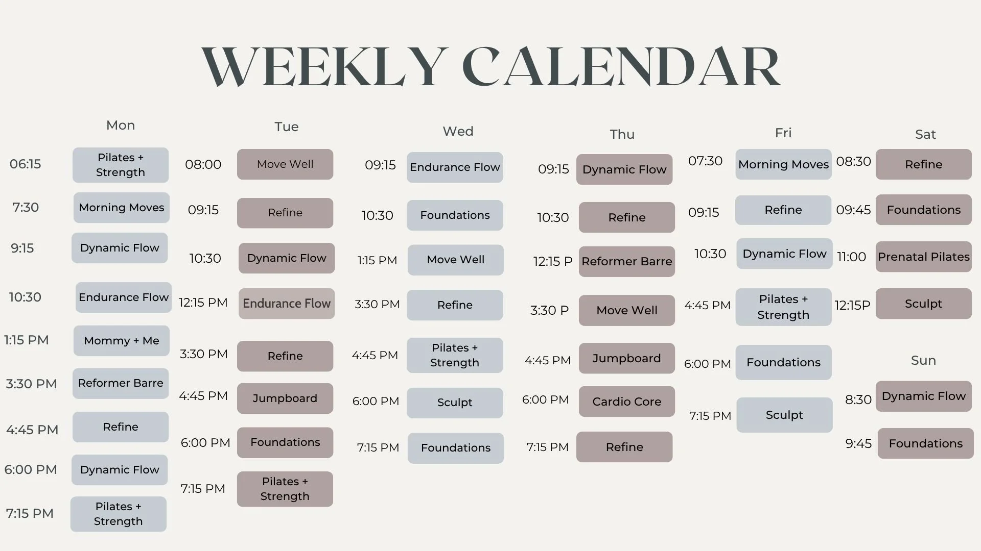 New to the studio? Enjoy 5 Group Classes Over 8 Weeks for $75. Includes access to Foundations, and Refine Classes.